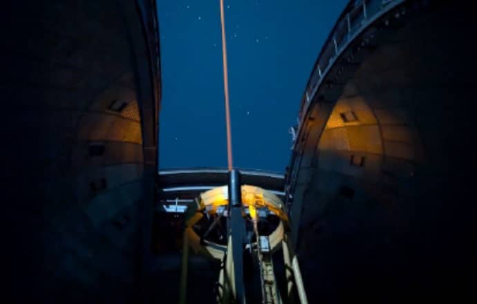 In early September 2025, Areté in collaboration with researchers from the University of California Santa Cruz (UCSC) and the UCO Lick Observatory, performed an on-sky demonstration of a Sodium Laser Guide Star System (SLGS) developed by Areté. Figures 1 and 2 are pictures of the 589nm SLGS beam exiting the observatory dome on the night of September 6/7.